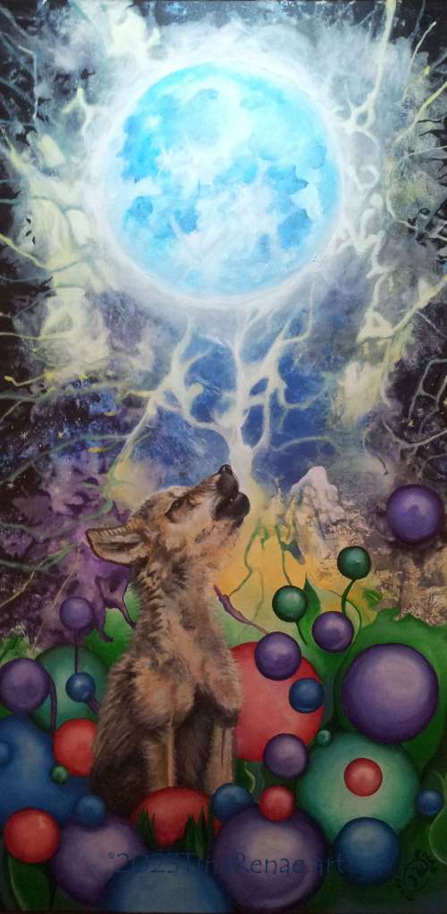 My little wolf, is for sale. He is created with acrylic paint on canvas, the dimensions are; 100x50x4cm. Come in to see him up close if you can, as it has been said many times, there is an energy to my paintings that you have to experience, a picture only grabs a little slice of it!