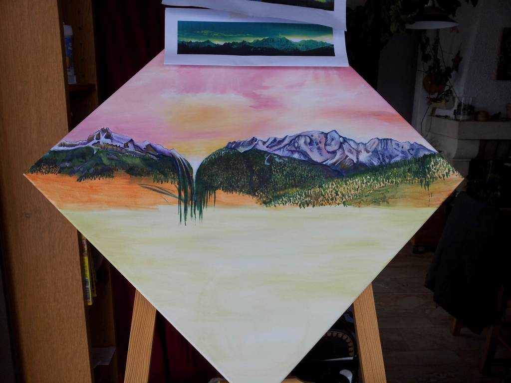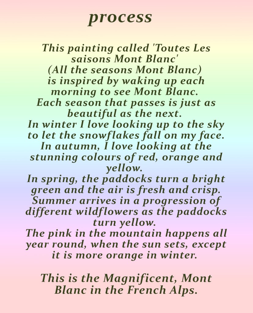 This painting is inspired by waking up each morning to see Mont Blanc.