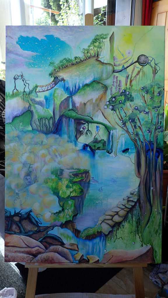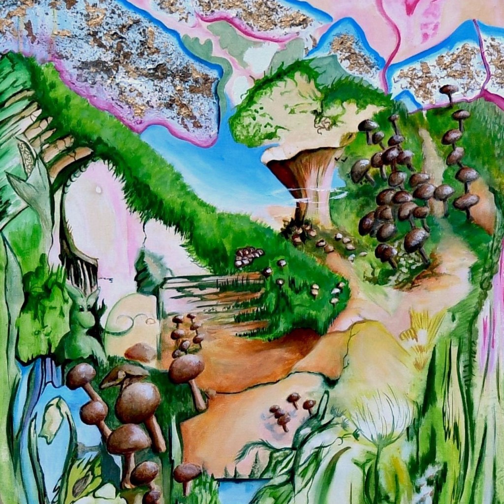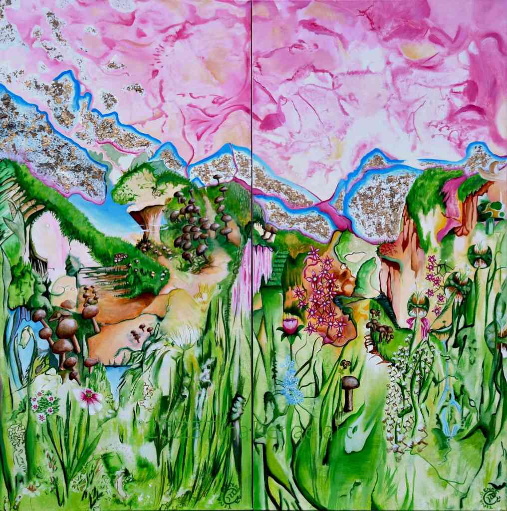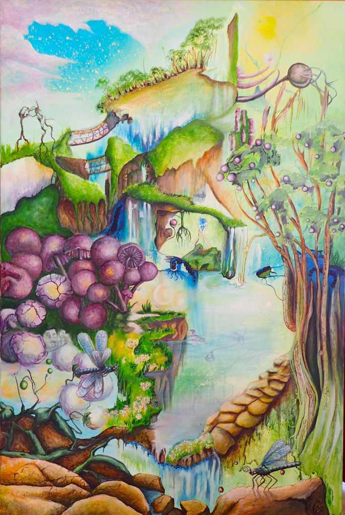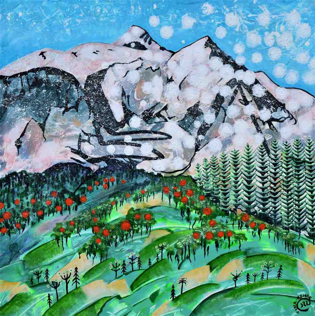 Tina-Renae’s landscapes are largely intuitive, blended with research and experience. The resulting creations are magical and colourful, showing worlds from this reality, filtered through the artist’s imaginative eyes.