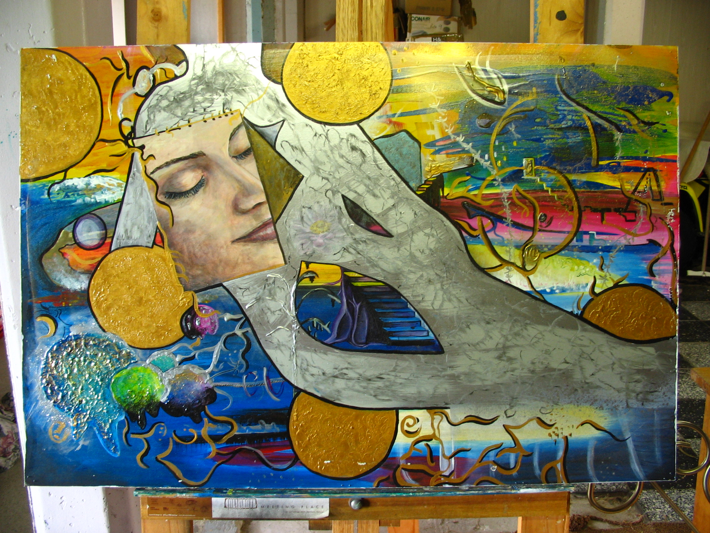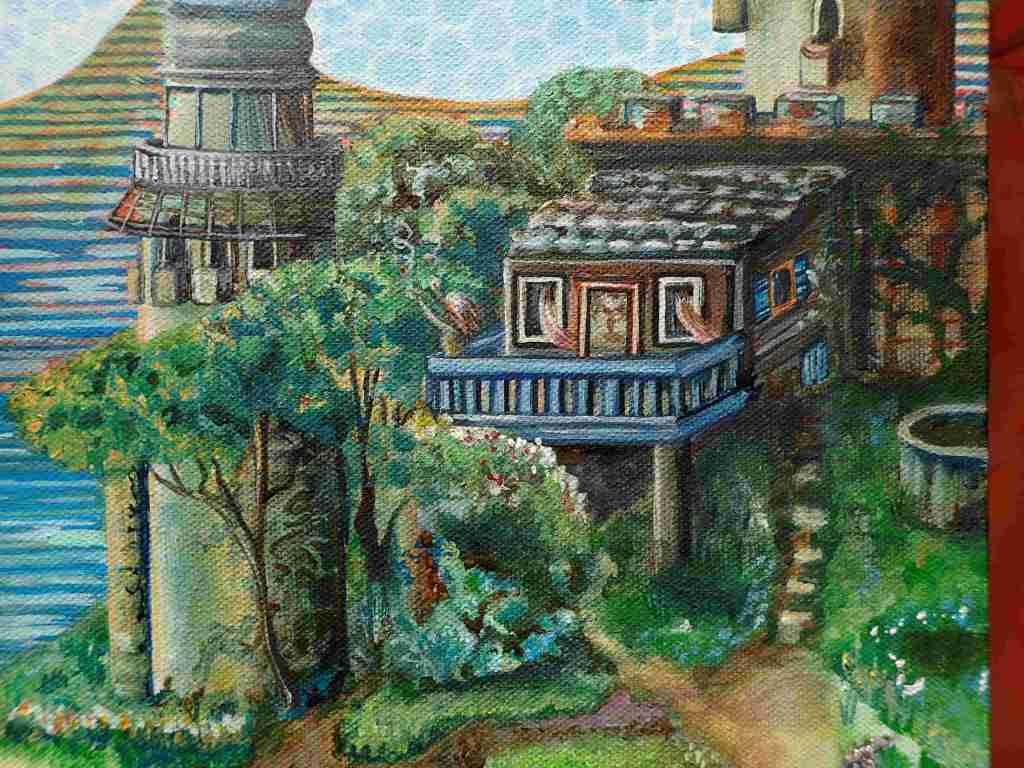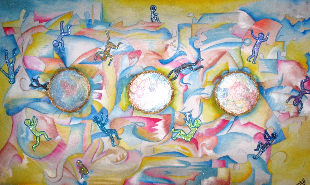 Left: “All under this roof.” Acrylic on 120x100x2cm stretched canvas, 2006