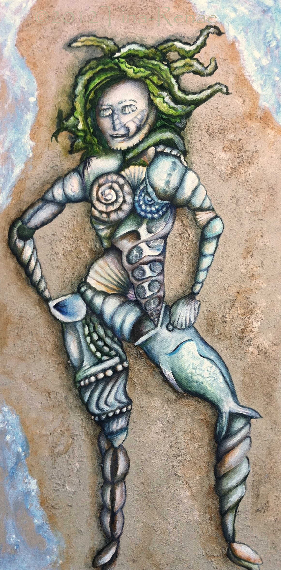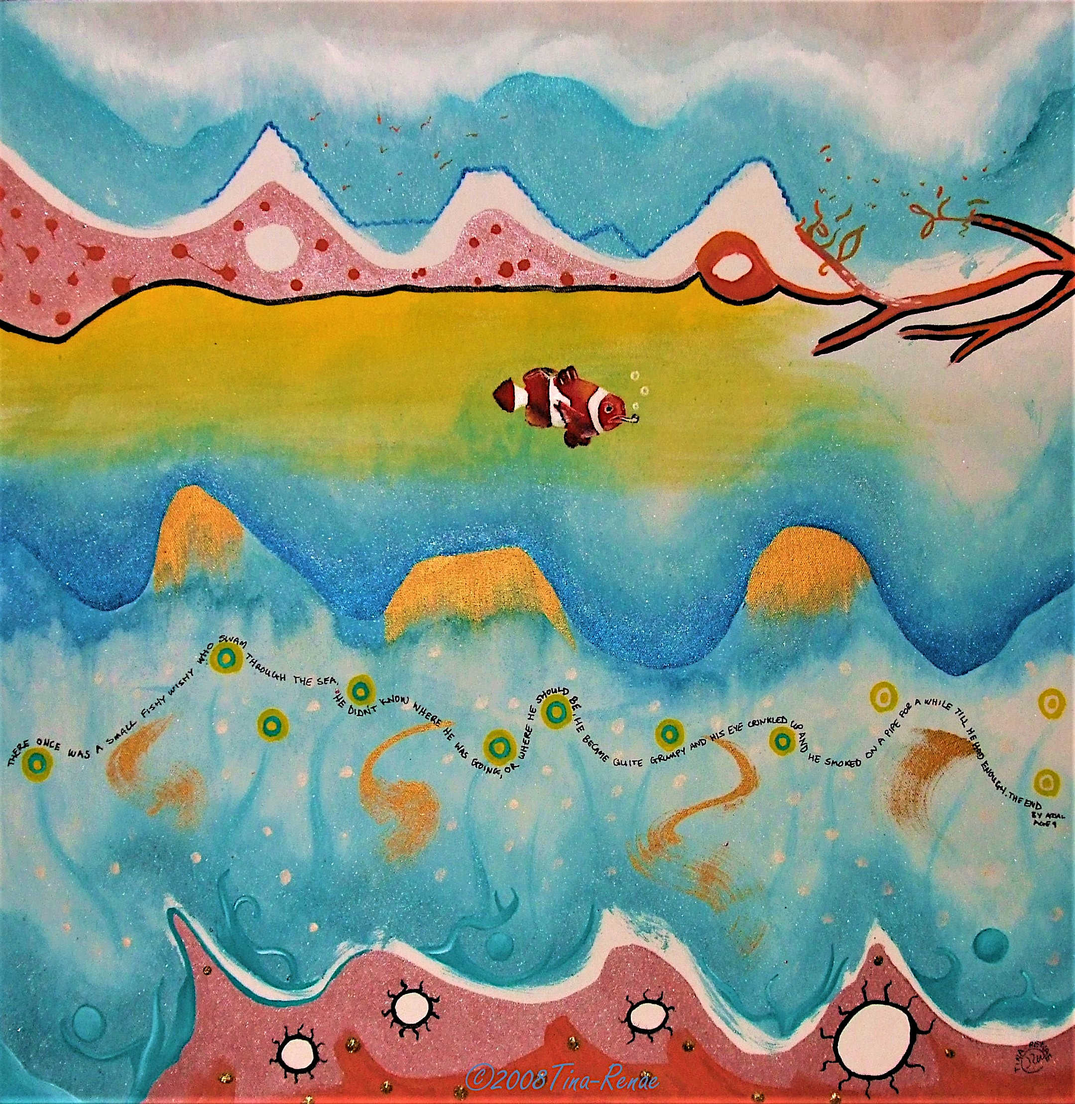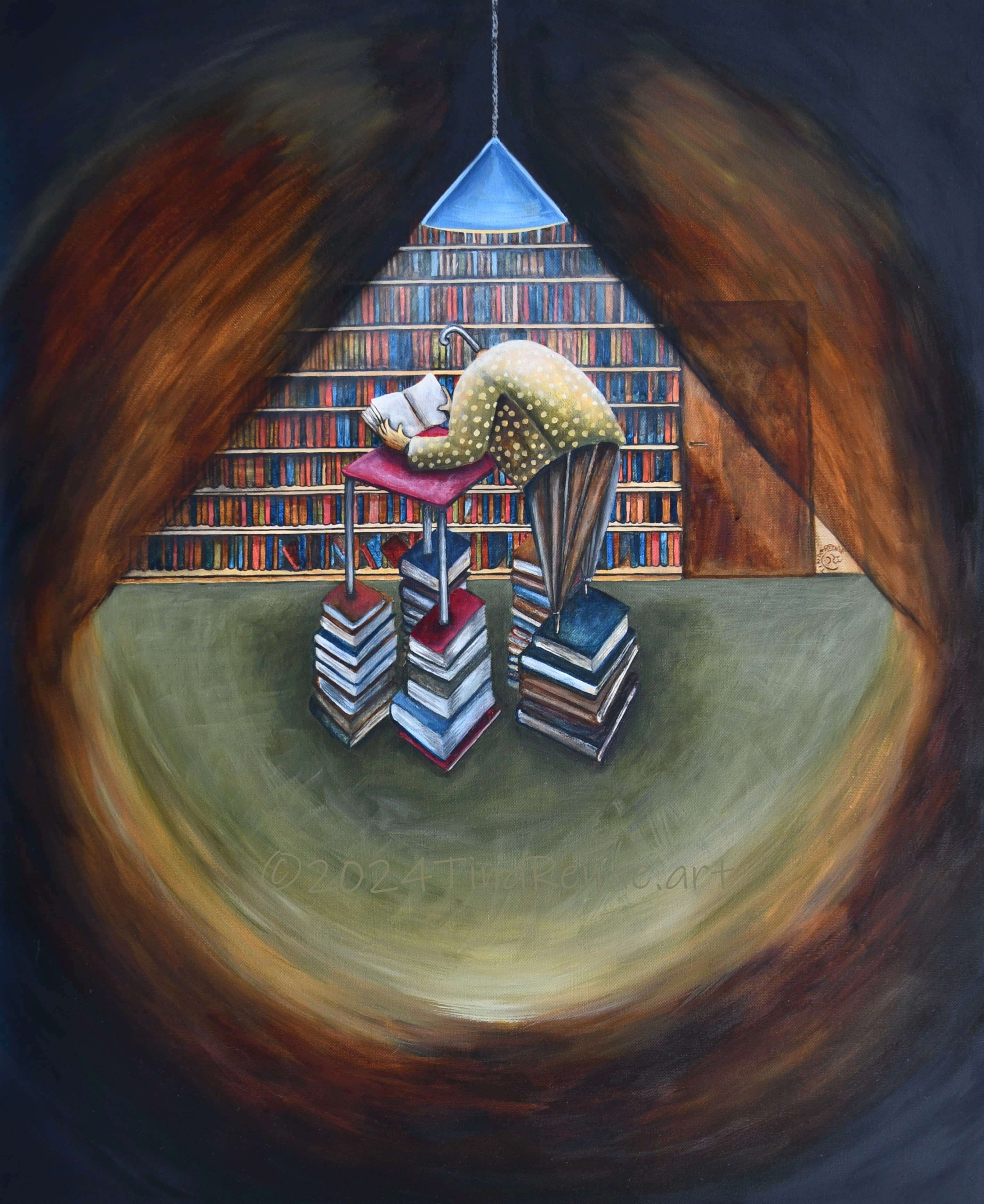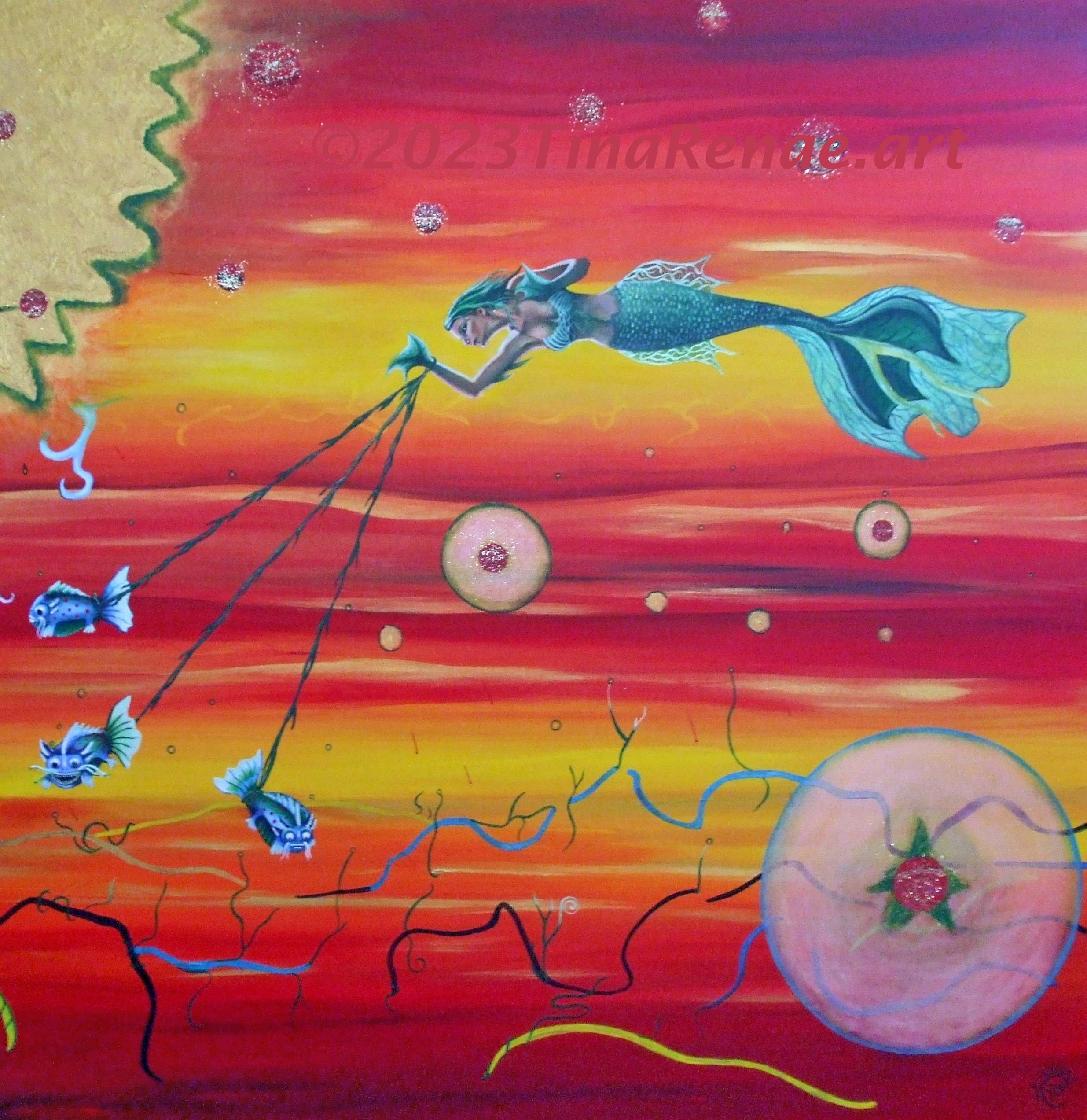 The painting called ‘Tic Toc’ has nothing to do with the social media platform, but everything to do with time. In particular, the space in-between the conscious and the sub-conscious. The colours, imagery and even the mindset through the painting process were all mindfully done to give the painting the energy needed to bring on a theta wave beat for the viewer. This is when you step out of your relative reality and take the watery path to other worlds that exist beyond ours. This is also one of the many paths to enter the subconscious, where all time exists at once or not at all, depending on the perspective. Travel light, there is no room for baggage.