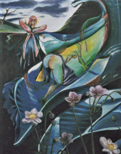 This painting is inspired from a photograph taken by Tobias Friedrich of freediver Anna von Boetticher, swimming under the ice in Greenland.